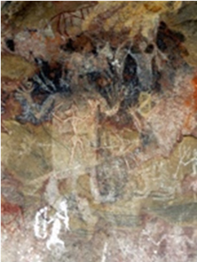The paintings belong to the main three periods determined in the Pachmaṛhī area, i.e., Late Mesolithic, Neolithic Chalcolithic, Historic/Late Historic (op. cit.). Many superimpositions occur.