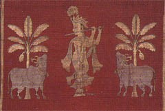 The Vallabha or Vaishnava sect, was eshtablished by Vallabhacharya around 1478-1530 AD. The principal centre was Mathura and Vrandavana. Krishna was the chief deity worshipped as Srinath. The central icon is Srinathaji lifting Mount Goverdhan with his left hand. Other subjects were bala Krishna, The child Krishna and Gopala Krishna, the cowherd who enchanted the gopis and gwalas with the magic melody of his flute.